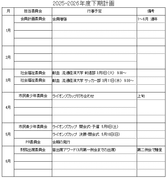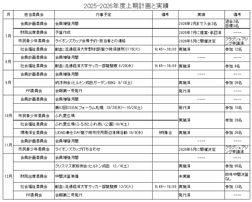 龍ケ崎ライオンズクラブ25-26下期 委員会計画と上期実績